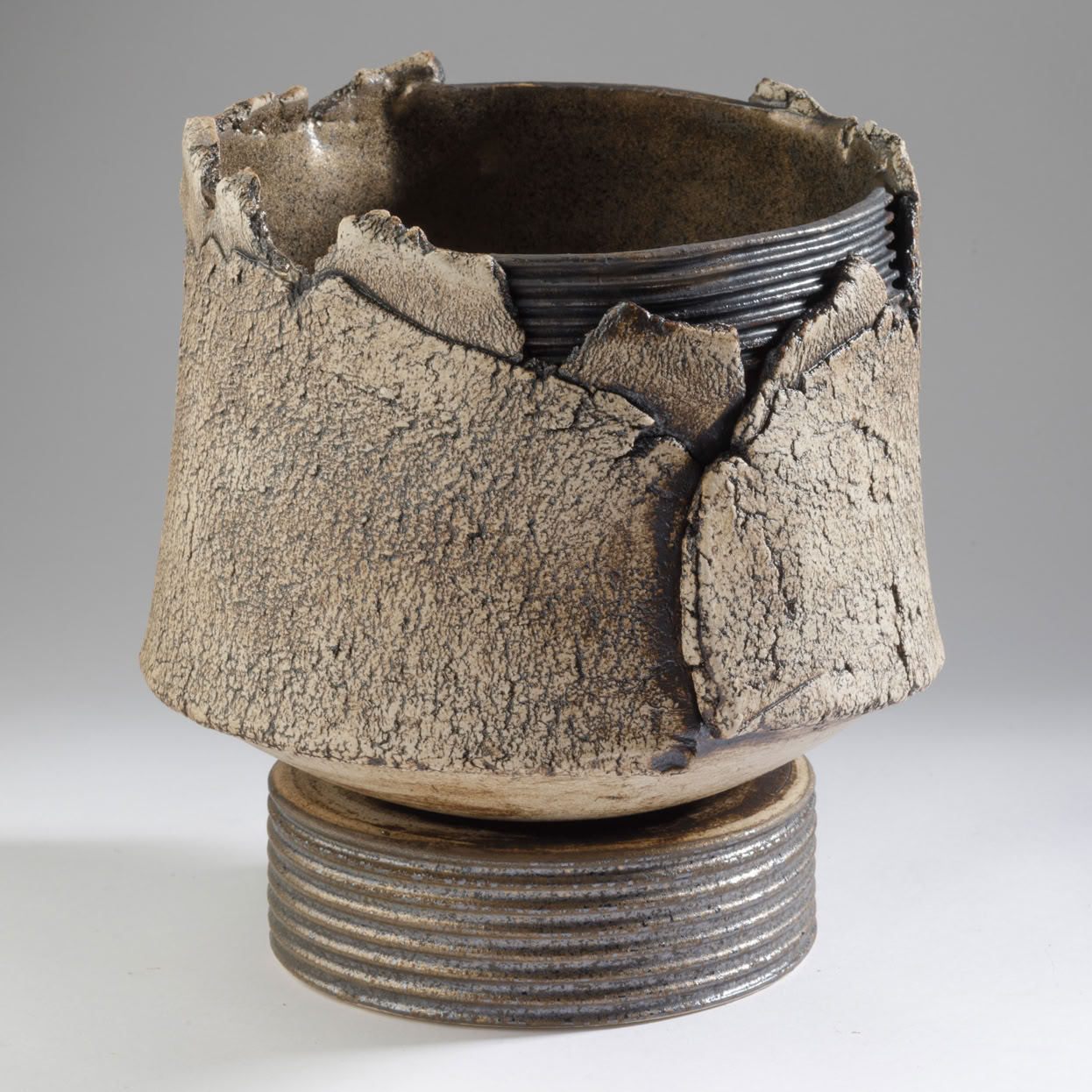 When I was in my teens I watched a documentary about Dan Arbeid, where he cut a pot into pieces and then stuck them back together. Fifty-plus years later I remembered that film, when slabs would sometimes tear as I lifted them from my bench. So I started joining them back together, making sure the join was obvious. This developed into an obsession, to make my slabs as imperfect as I could, with random flaws and textures that as a student I would have rejected.