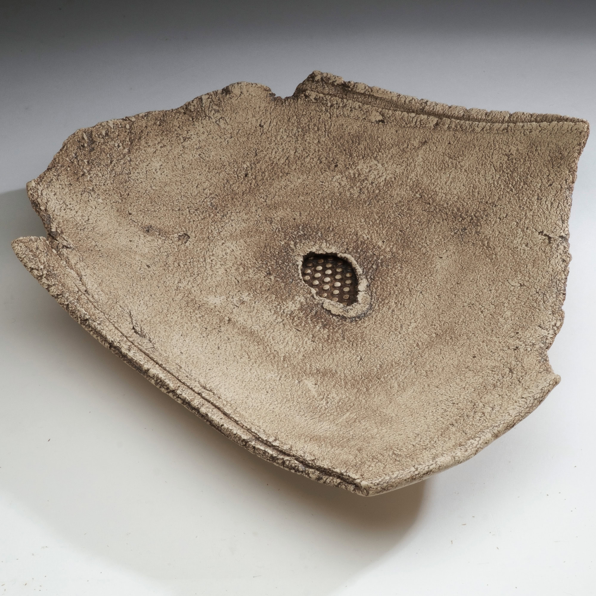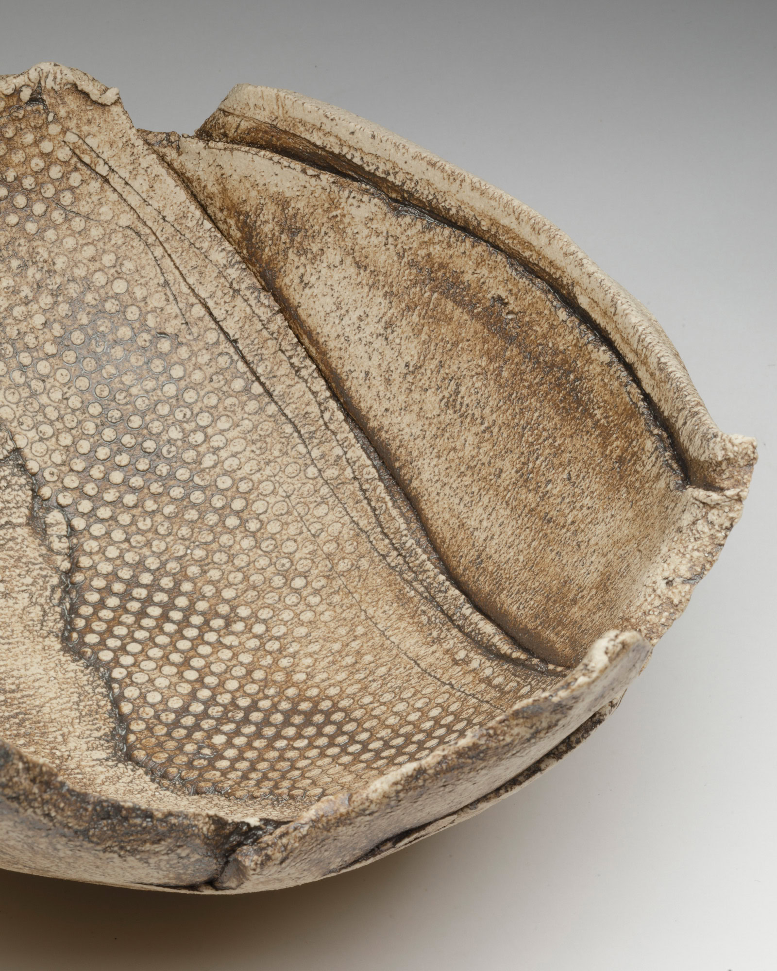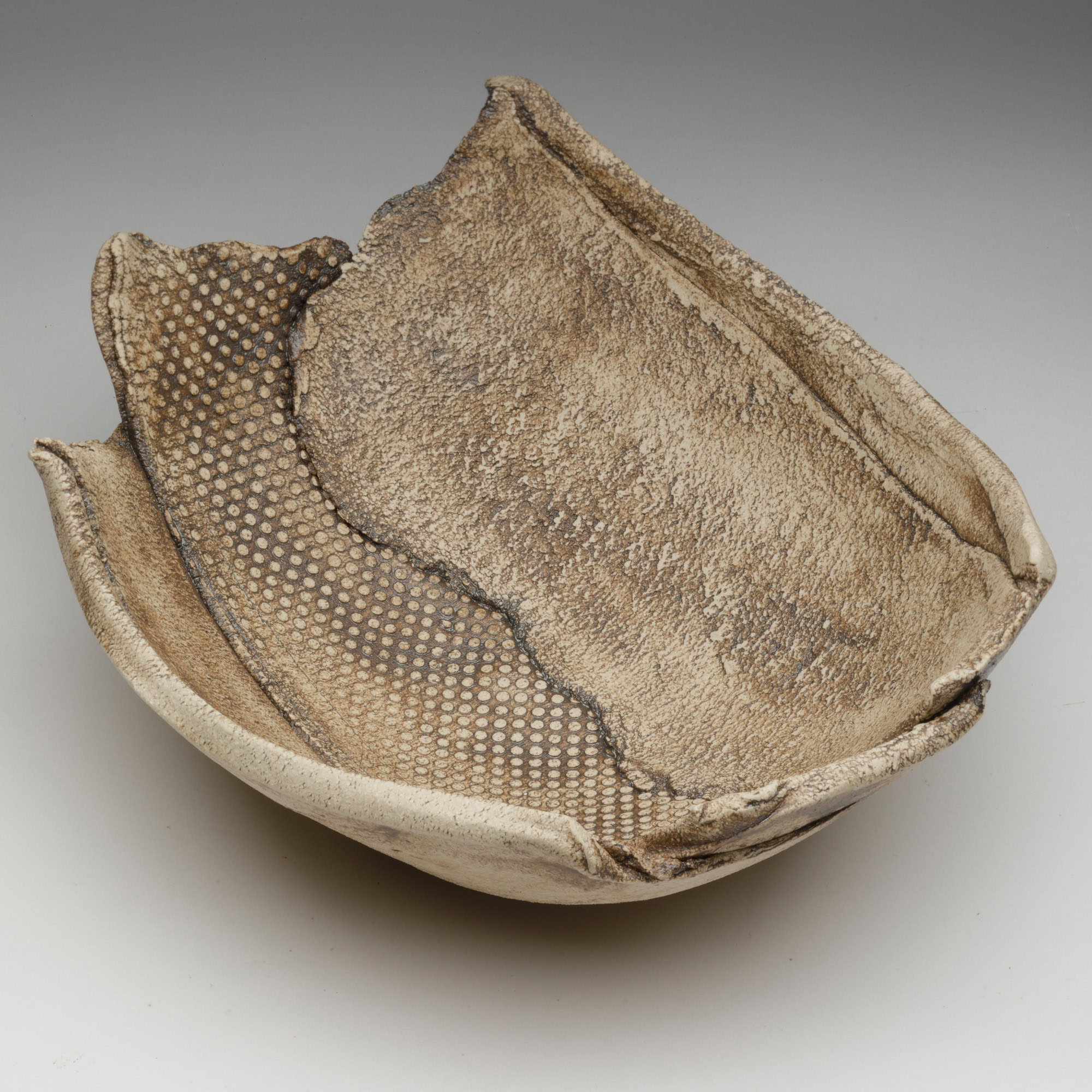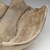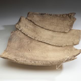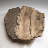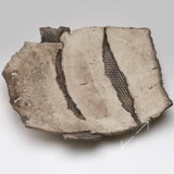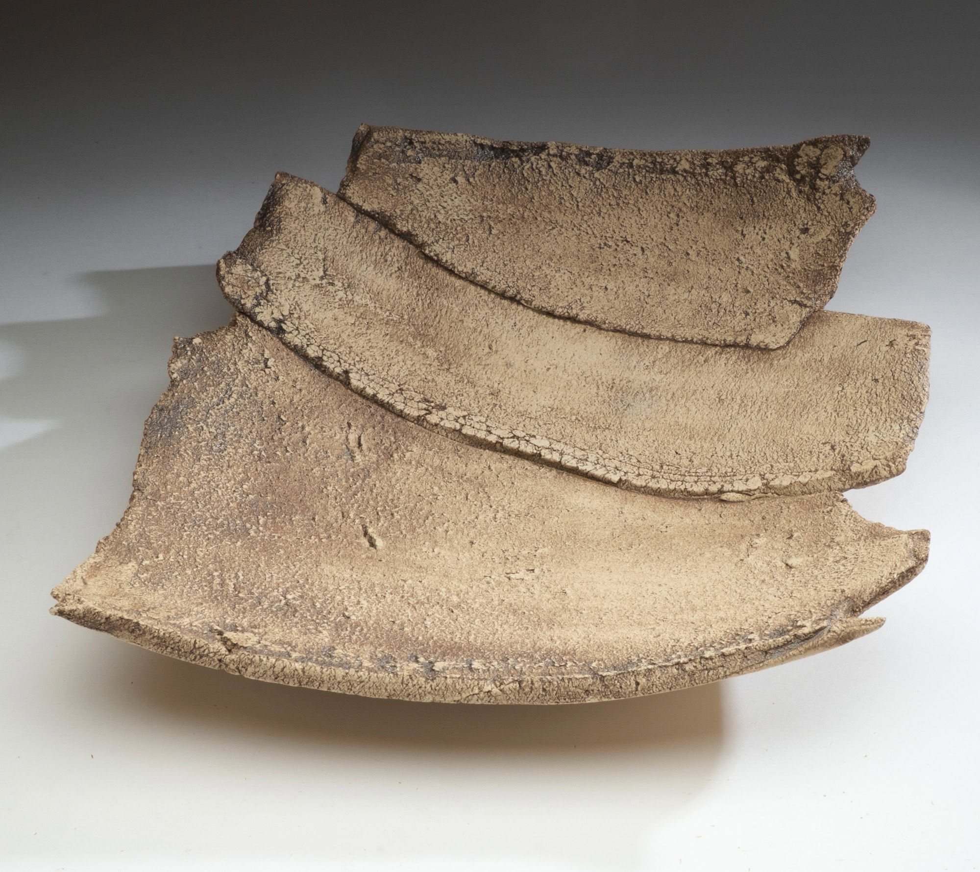 Multiple torn strips of clay joined by dot-patterned slabs.