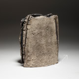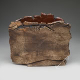 The corrugated wings of this piece have a heavy coat of manganese oxide, varying from brown to metallic black, the central panels lightly rubbed. Bronze glaze over the interior surfaces.